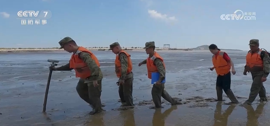 幸運(yùn)的是,記者跟隨采訪的這次任務(wù)沒有遭遇到大風(fēng)浪,經(jīng)過1個(gè)小時(shí)的平穩(wěn)航行后,海測(cè)小分隊(duì)順利抵達(dá)了坐標(biāo)方位。指揮員告訴記者,海測(cè)分為水深測(cè)量和地形測(cè)量,為了讓海圖上陸海結(jié)合部的拼接更加完美,海測(cè)兵們必須要背著沉重的測(cè)量裝備深入到小艇不能到達(dá)的岸線灘涂手動(dòng)測(cè)繪,測(cè)量點(diǎn)位附近大大小小的礁石,在海水的長期浸泡下變得異常濕滑,泥濘的淺灘也隨時(shí)有塌陷的危險(xiǎn)。