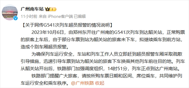 ·廣州南站通報高鐵超員報警:部分到站旅客未下車,擬繼續(xù)乘車到前方站。