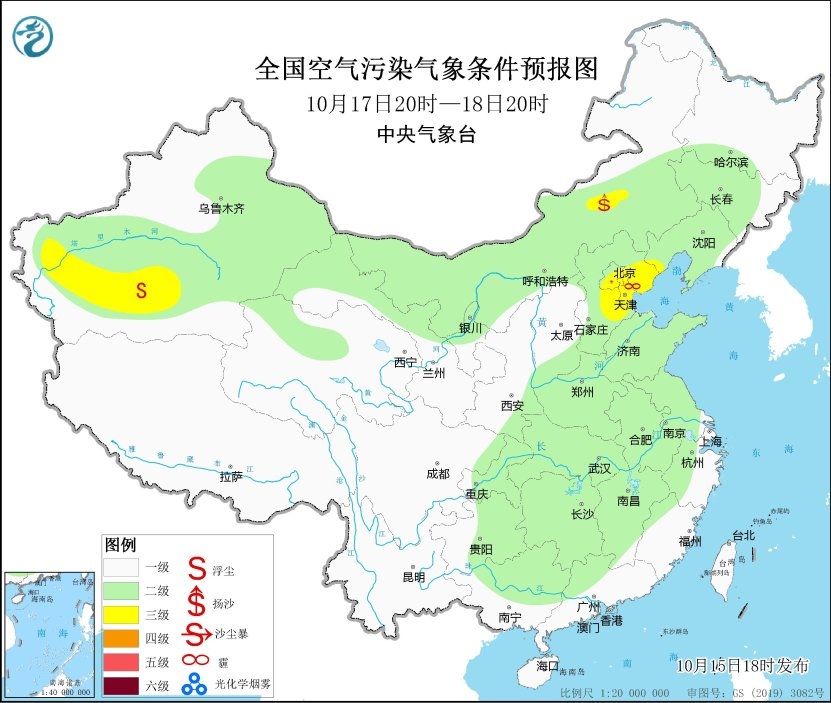 中央氣象臺:16日至18日華北中南部等地大氣擴散條件一般