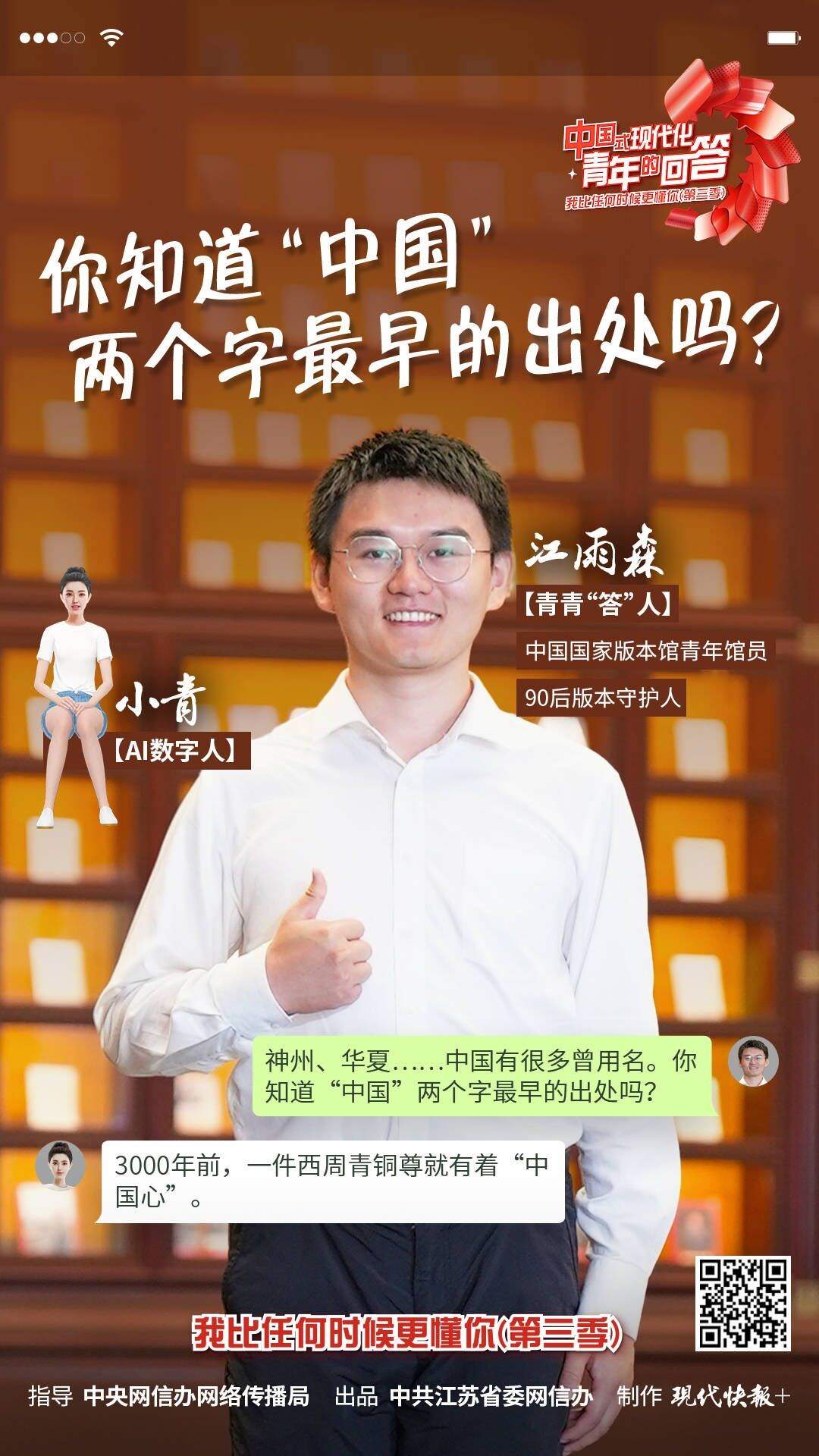 在 “錦水含章”篇章中,以歌曲《紅梅贊》引入,《江姐在川大》編劇冉詩媛、四川大學(xué)“江姐班”學(xué)生代表張鈺、“江姐紀(jì)念館”設(shè)計(jì)者段禹農(nóng)、第49屆南丁格爾獎獲得者蔣艷和四川大學(xué)三星堆遺址考古隊(duì)隊(duì)長黎海超等結(jié)合工作學(xué)習(xí)實(shí)踐,動情講述傳承江姐精神矢志報(bào)國、援外抗疫展現(xiàn)大愛、創(chuàng)新賦能文博考古故事,生動詮釋紅色傳承、文脈賡續(xù)、人民至上。