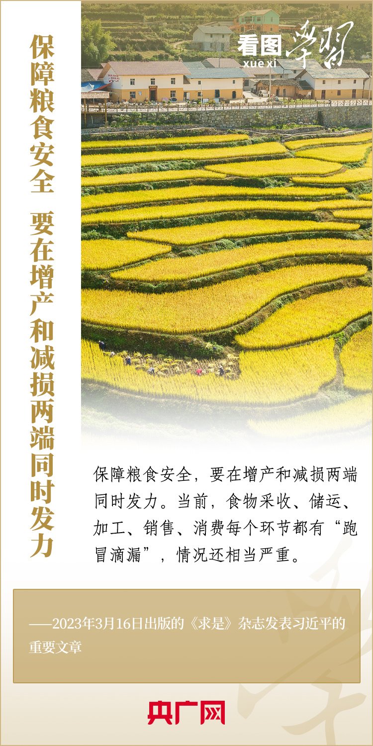 糧食安全是“國之大者”。黨的十八大以來,習近平總書記在地方考察調(diào)研期間,常常走進田間地頭,看長勢、問收成,多次強調(diào)“中國人的飯碗任何時候都要牢牢端在自己手中”,“保障糧食安全,要在增產(chǎn)和減損兩端同時發(fā)力”。讓14億多人吃飽吃好,總書記始終念茲在茲。今天是世界糧食日,一起來學(xué)習!