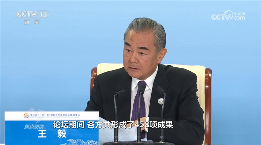 央視網(wǎng)消息(焦點(diǎn)訪談):10月18日,第三屆“一帶一路”國際合作高峰論壇在北京舉行。十年櫛風(fēng)沐雨,十年春華秋實(shí)。中國同各國堅(jiān)守初心、攜手同行,推動(dòng)“一帶一路”國際合作從無到有,蓬勃發(fā)展,取得豐碩成果。本次高峰論壇是共建“一帶一路”進(jìn)程中又一個(gè)重要里程碑。10月18日當(dāng)晚,在高峰論壇結(jié)束之際,中共中央政治局委員、外交部長(zhǎng)王毅舉行中外記者會(huì),介紹高峰論壇重要成果。