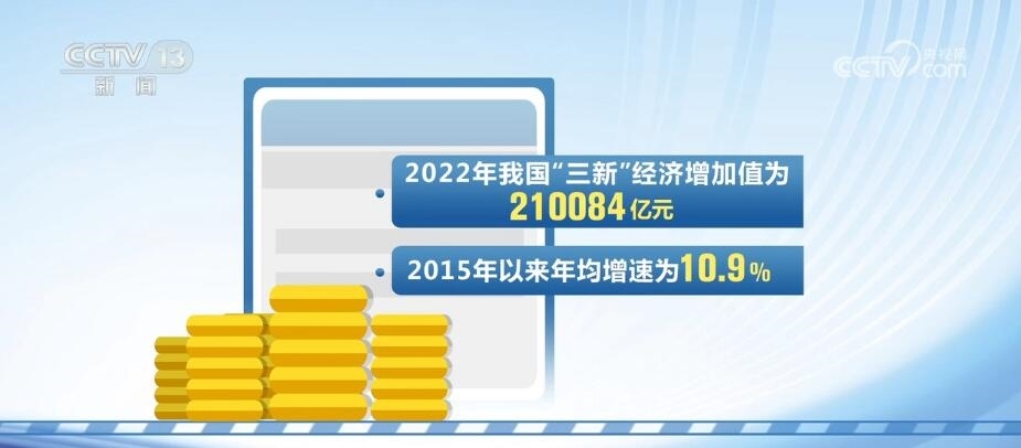 2022年,我國“三新”經(jīng)濟(jì)增加值為210084億元,2015年以來年均增速為10.9%,比同期GDP現(xiàn)價(jià)增速高2.5個(gè)百分點(diǎn),相當(dāng)于GDP的比重為17.36%。“三新”經(jīng)濟(jì)不斷發(fā)展,已成為帶動(dòng)經(jīng)濟(jì)轉(zhuǎn)型升級(jí)、增強(qiáng)經(jīng)濟(jì)活力的重要力量。