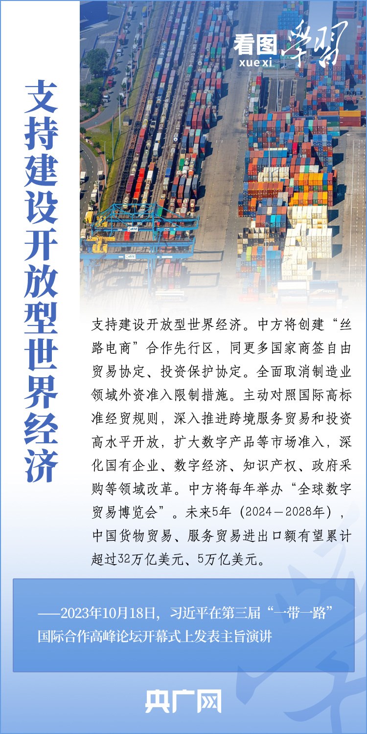 10月18日,習(xí)近平主席出席第三屆“一帶一路”國際合作高峰論壇開幕式并發(fā)表主旨演講,宣布中國支持高質(zhì)量共建“一帶一路”的八項行動,強調(diào)中方愿同各方深化“一帶一路”合作伙伴關(guān)系,推動共建“一帶一路”進入高質(zhì)量發(fā)展的新階段,為實現(xiàn)世界各國的現(xiàn)代化作出不懈努力。一起來學(xué)習(xí)!
