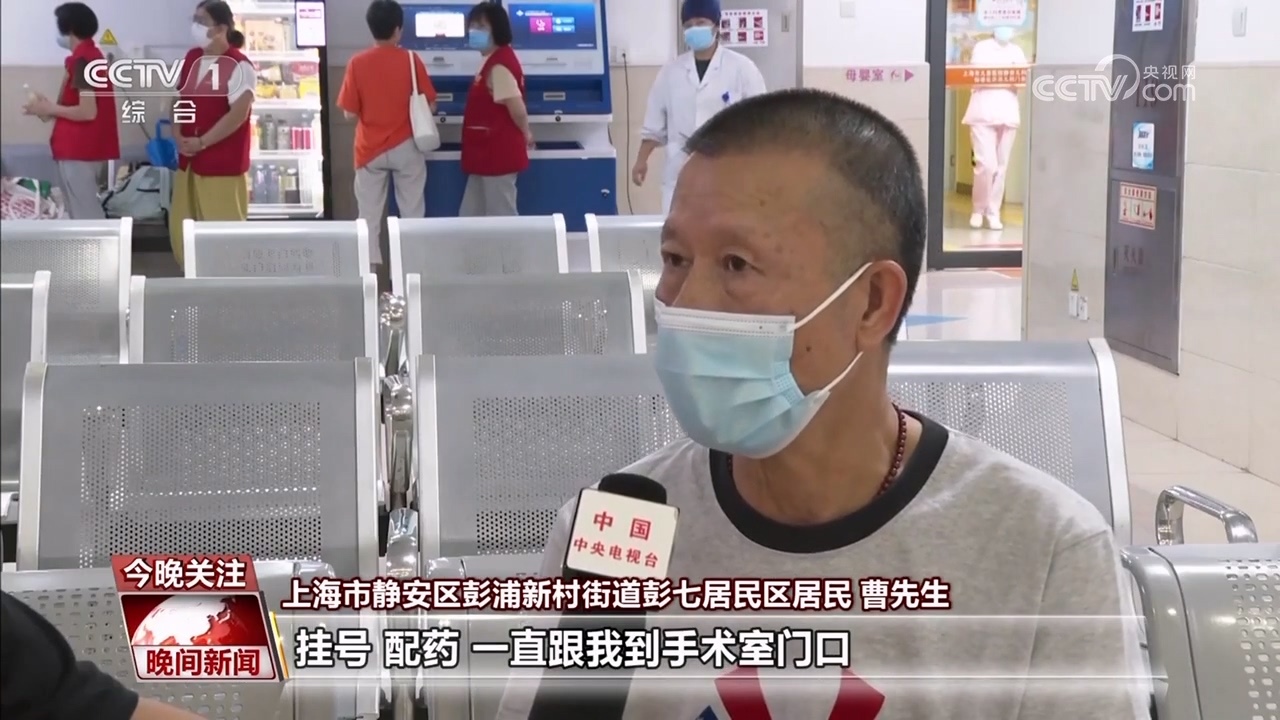 上海市靜安區(qū)彭浦新村街道彭七居民區(qū)居民 曹先生:掛號,配藥,一直跟我到手術(shù)室門口,(術(shù)后)推著輪椅送我到病房,真的就像我自己的親人一樣在照顧我,從頭到尾都(是)這樣。