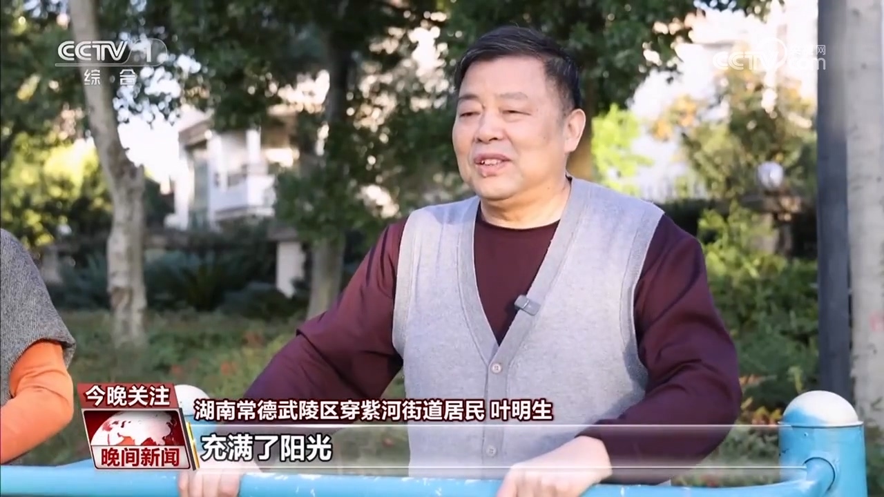 湖南常德武陵區(qū)穿紫河街道居民 葉明生:我們老年人現(xiàn)在的生活確實(shí)好過了,充滿了陽光,社區(qū)到處都有了體育器材、有運(yùn)動場所、有健身場所,現(xiàn)在我們玩得多開心啊。