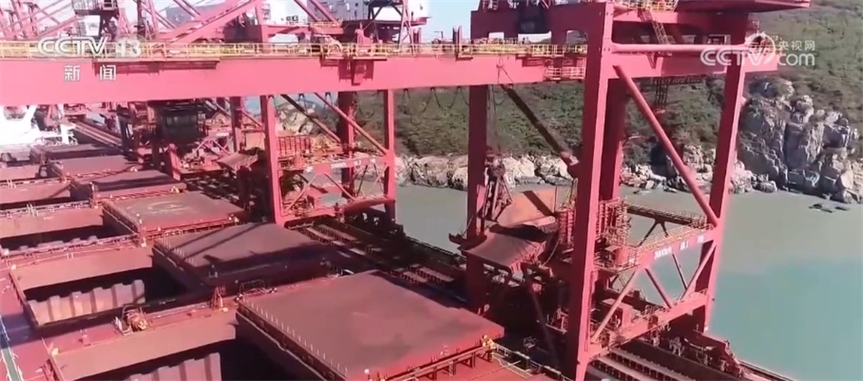 記者來到寧波舟山港鼠浪湖礦石中轉(zhuǎn)碼頭時,一個個抓斗正忙著從巨輪上接卸礦石。今年以來,40萬噸礦船是這里的???。作為大宗物資集散地,寧波舟山港承擔(dān)了長江經(jīng)濟(jì)帶45%的鐵礦石、90%以上的油品中轉(zhuǎn)量。前三季度,寧波舟山港經(jīng)營體系內(nèi)鐵礦石的接卸量超過了1億噸。