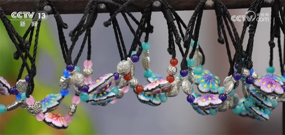 讓石順蓮她們沒(méi)想到的是,過(guò)去從未在傳統(tǒng)苗繡中出現(xiàn)過(guò)的胸針、發(fā)釵、耳墜等都能融入苗繡元素,如今這些生活飾品、文創(chuàng)產(chǎn)品已成為游客們的香餑餑。