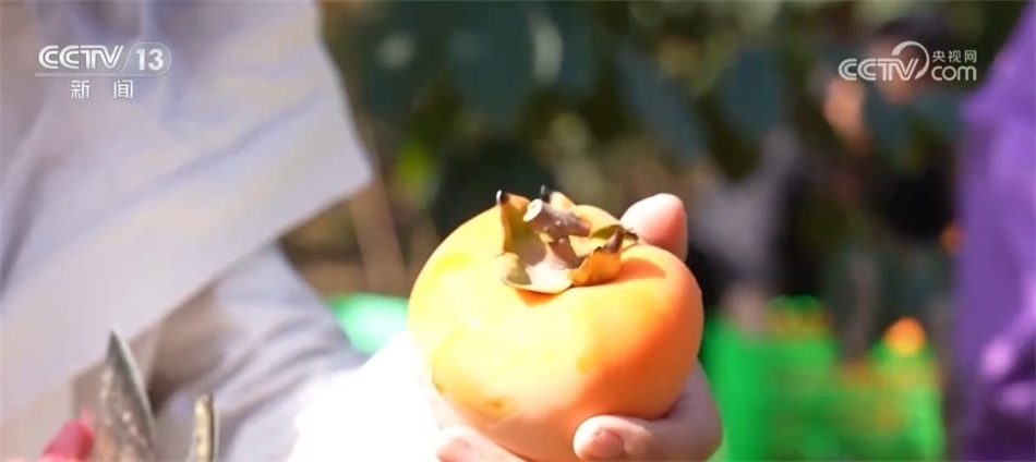 總臺記者 譚海梅:柿子要成為柿餅,必須要削皮,您看我手上這個柿子,它表皮有白色的霜,它其實是一種蠟質層,因為蠟質層比較厚,所以里面的水分很難蒸發(fā),而且柿子皮比較澀,所以削皮的過程也是脫澀的過程。