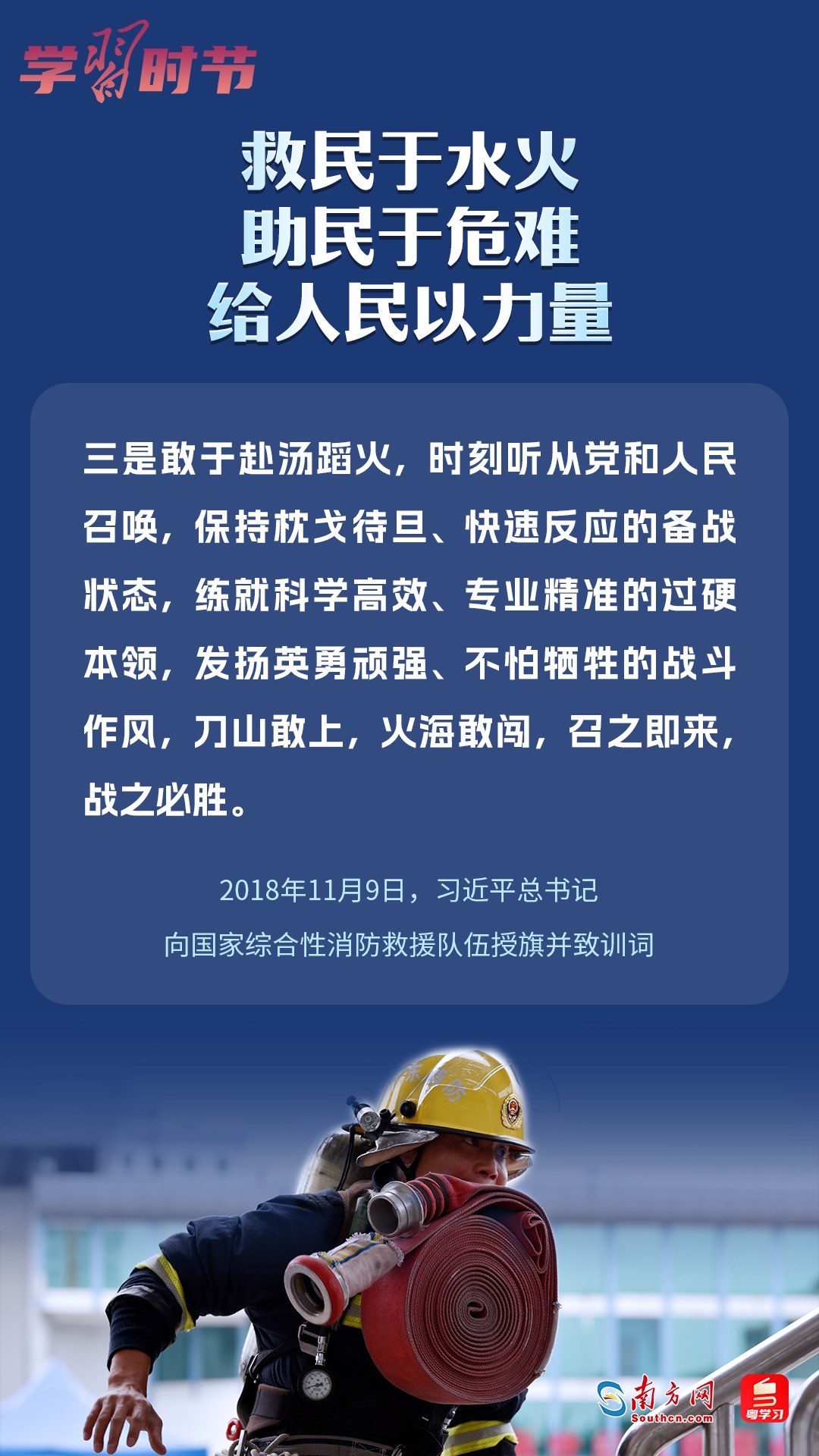 今年11月9日是習(xí)近平總書記為國家綜合性消防救援隊伍授旗并致訓(xùn)詞五周年,也是全國消防日。讓我們一起重溫總書記重要訓(xùn)詞,感受總書記對百姓安危的深情牽掛和對“火焰藍(lán)”的殷切期望。