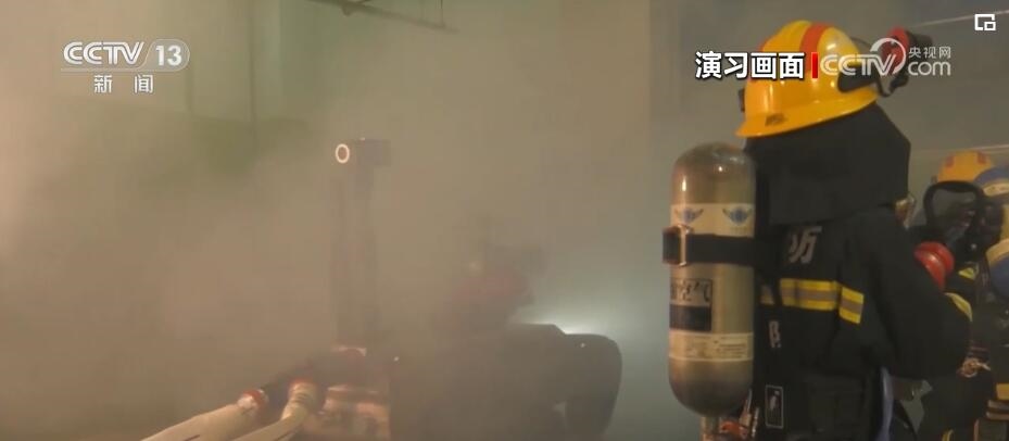 演習(xí)過程中,舉高噴射消防車從外部進(jìn)行滅火作業(yè)的同時(shí),多支消防救援小隊(duì)進(jìn)入商場(chǎng)內(nèi)部,在濃煙中實(shí)戰(zhàn)模擬火場(chǎng)搜救和滅火作戰(zhàn)。在救援人員的遙控指揮下,消防救援機(jī)器狗首先突入火場(chǎng),利用身上加裝的煙氣成分分析儀、攝像頭等多種設(shè)備,實(shí)時(shí)監(jiān)測(cè)環(huán)境危險(xiǎn)狀況,并對(duì)火場(chǎng)環(huán)境進(jìn)行偵察。在大火猛烈燃燒、建筑物結(jié)構(gòu)不穩(wěn)定情況下,消防救援人員遠(yuǎn)程控制無人滅火機(jī)器人首先進(jìn)入火場(chǎng),進(jìn)行前期滅火作業(yè)。為保障內(nèi)攻救援人員安全,消防員綜合定位系統(tǒng)也投入使用。每名消防員都攜帶平板終端和定位信標(biāo),指揮員可以實(shí)時(shí)掌握進(jìn)入火場(chǎng)人員的生命體征、實(shí)時(shí)位置。一旦救援人員遇險(xiǎn),系統(tǒng)能夠第一時(shí)間引導(dǎo)緊急救援小組展開營(yíng)救行動(dòng)。