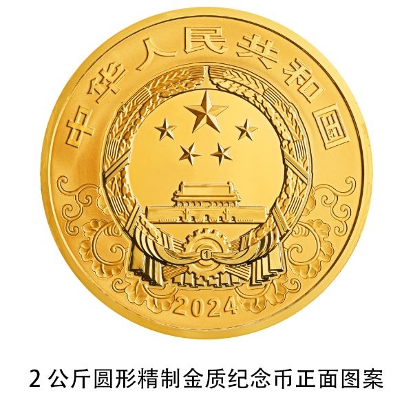 2公斤圓形金質(zhì)紀(jì)念幣為精制幣,含純金2公斤,直徑110毫米,面額20000元,成色99.9%,最大發(fā)行量50枚。