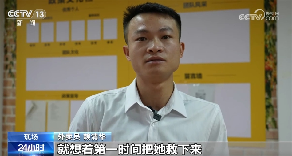 外賣員 賴清華:就想著第一時(shí)間把她救下來,我覺得換做任何一個(gè)人當(dāng)時(shí)也會這樣做,伸一把援手。