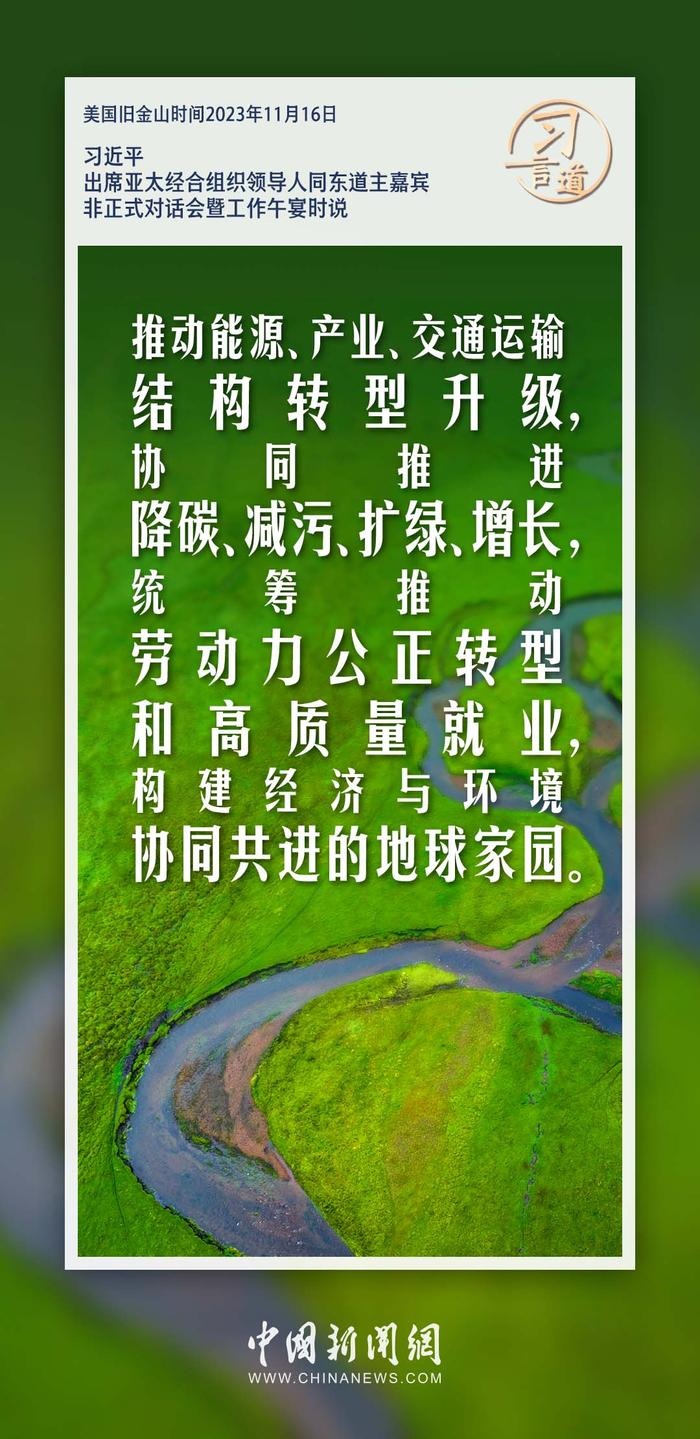 當(dāng)?shù)貢r(shí)間11月16日中午,中國(guó)國(guó)家主席習(xí)近平在舊金山出席亞太經(jīng)合組織領(lǐng)導(dǎo)人同東道主嘉賓非正式對(duì)話會(huì)暨工作午宴。習(xí)近平指出——