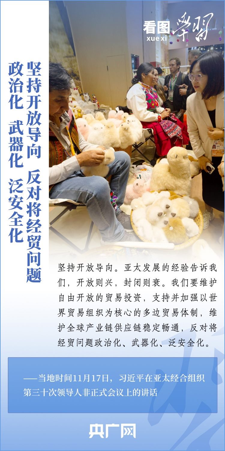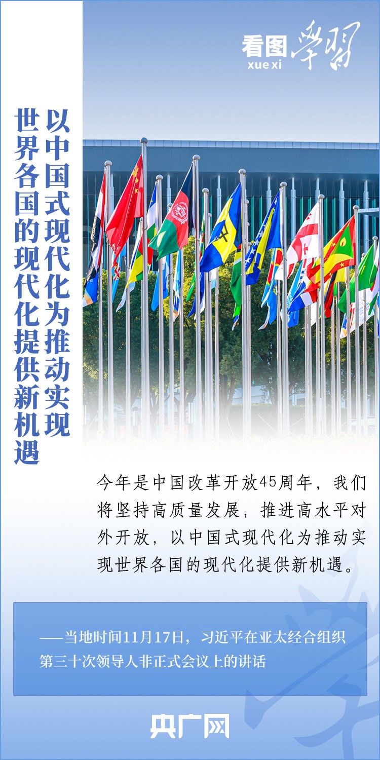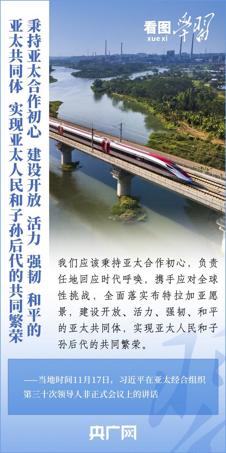 當?shù)貢r間11月17日上午,亞太經(jīng)合組織第三十次領(lǐng)導人非正式會議在美國舊金山舉行。國家主席習近平出席會議并發(fā)表題為《堅守初心 團結(jié)合作 攜手共促亞太高質(zhì)量增長》的重要講話。習主席在講話中全面闡述了中國對深化亞太合作、促進地區(qū)和世界經(jīng)濟增長的重要主張,以“四個堅持”提出多項務(wù)實舉措,希望同各方一道努力,共同打造亞太下一個“黃金三十年”。一起來學習!