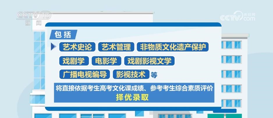 據(jù)了解,藝術(shù)類專業(yè)依據(jù)考生高考文化成績、專業(yè)考試成績,參考綜合素質(zhì)評價進行招生錄取。此次藝考改革一個重要的變化是,部分藝術(shù)類專業(yè)不再組織專業(yè)考試,包括藝術(shù)史論、藝術(shù)管理、非物質(zhì)文化遺產(chǎn)保護、戲劇學(xué)、電影學(xué)、戲劇影視文學(xué)、廣播電視編導(dǎo)、影視技術(shù)等,將直接依據(jù)考生高考文化課成績、參考考生綜合素質(zhì)評價,擇優(yōu)錄取。