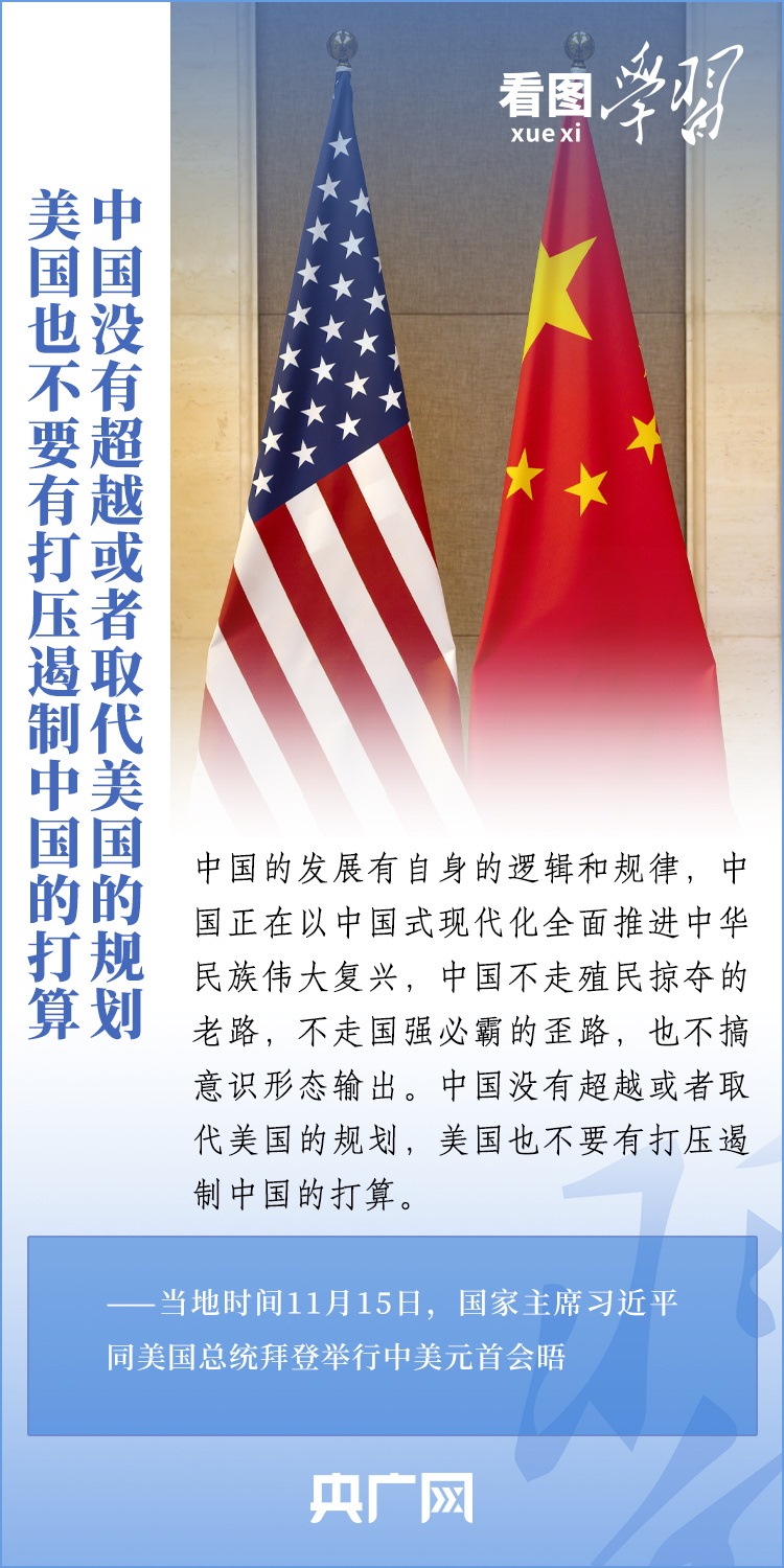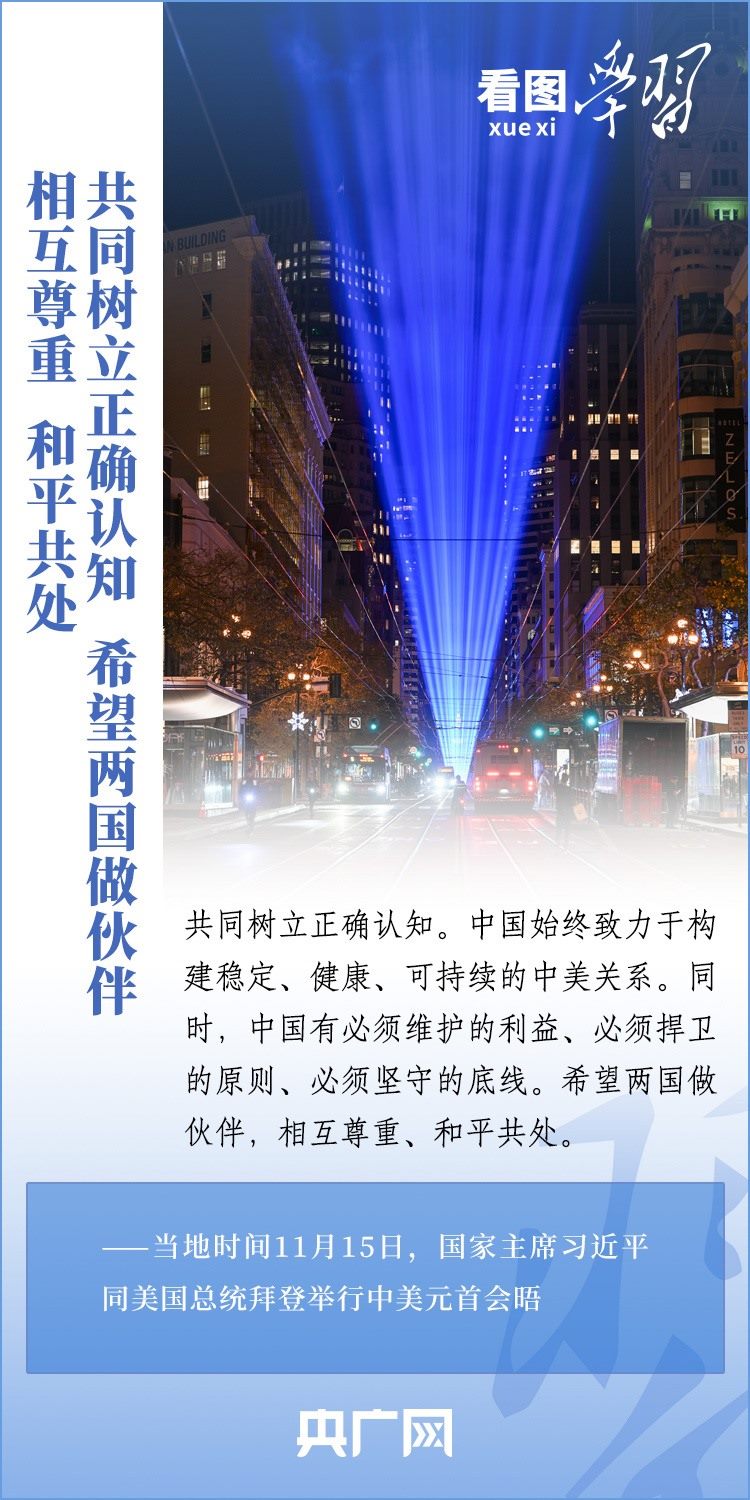 當(dāng)?shù)貢r間11月15日,國家主席習(xí)近平在美國舊金山斐洛里莊園同美國總統(tǒng)拜登舉行中美元首會晤。兩國元首就事關(guān)中美關(guān)系的戰(zhàn)略性、全局性、方向性問題以及事關(guān)世界和平和發(fā)展的重大問題坦誠深入地交換了意見。習(xí)近平主席指出,大國競爭解決不了中美兩國和世界面臨的問題。這個地球容得下中美兩國。中美各自的成功是彼此的機(jī)遇。一起來學(xué)習(xí)!