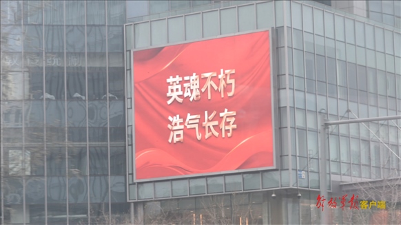 “英靈不朽,山河永念”“忠魂不泯,豐碑永存”“英雄城市,英雄回家”……公交站臺、樓宇外墻、室外大屏被句句標語點亮,對英雄的敬意化為紅色暖流,淌過城市的每條街巷,淌進人們心中。