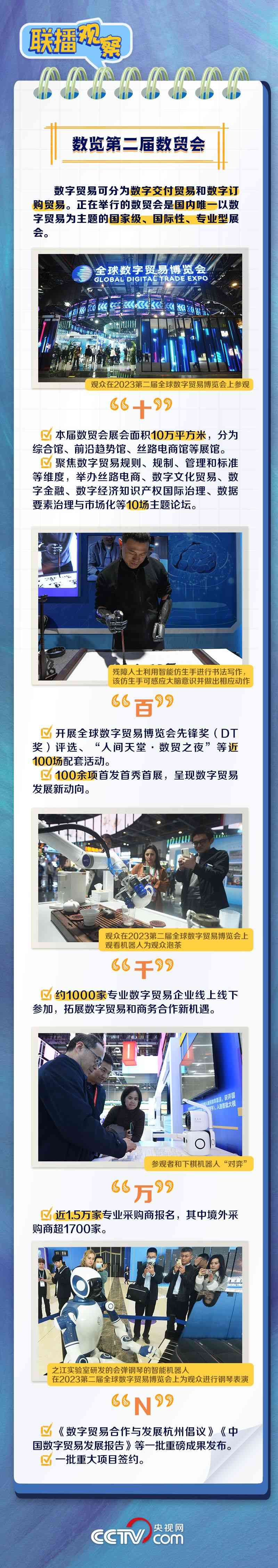 當(dāng)前,貨物貿(mào)易和服務(wù)貿(mào)易都呈現(xiàn)出不可逆的數(shù)字化轉(zhuǎn)型趨勢(shì)。什么是數(shù)字貿(mào)易?本屆數(shù)貿(mào)會(huì)有什么看點(diǎn)和亮點(diǎn)?我國(guó)數(shù)字貿(mào)易有何發(fā)展成果?央視網(wǎng)《聯(lián)播觀察》與您一同了解。