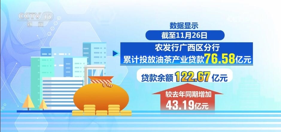 數(shù)據(jù)顯示,截至11月26日,農(nóng)發(fā)行廣西區(qū)分行累計(jì)投放油茶產(chǎn)業(yè)貸款76.58億元,貸款余額122.67億元,較去年同期增加43.19億元。