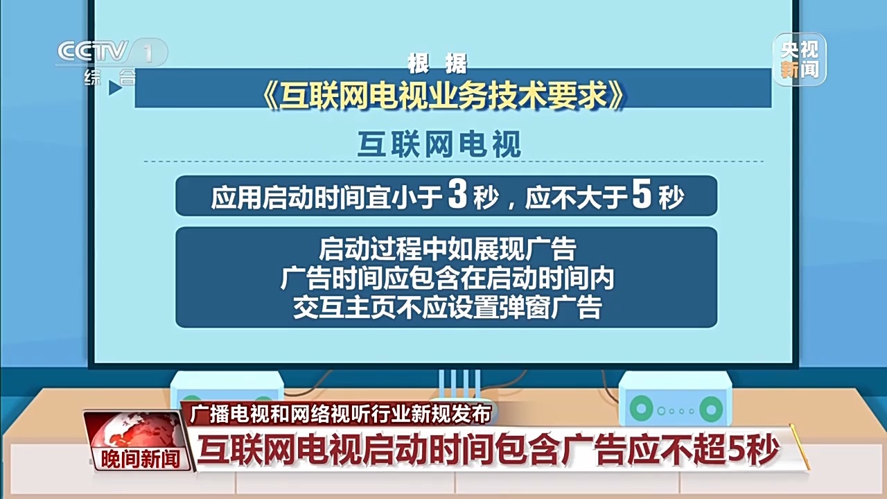 互聯(lián)網(wǎng)電視啟動時間包含廣告應(yīng)不超5秒