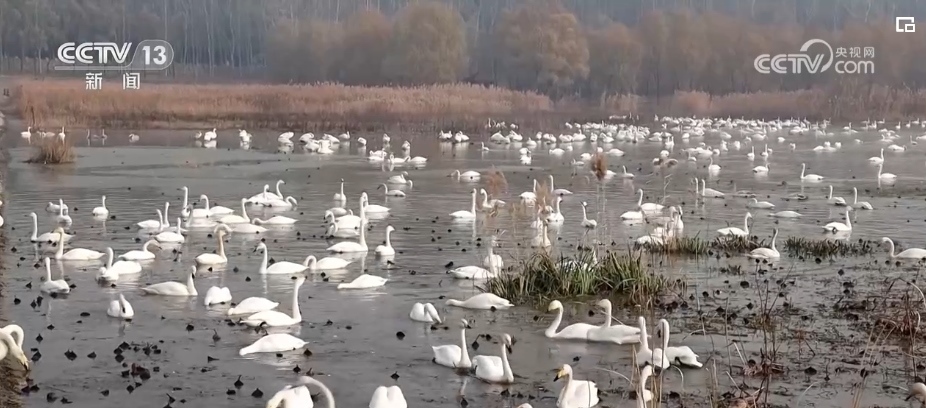 持續(xù)迎來(lái)越冬天鵝 候鳥(niǎo)互結(jié)“朋友圈”