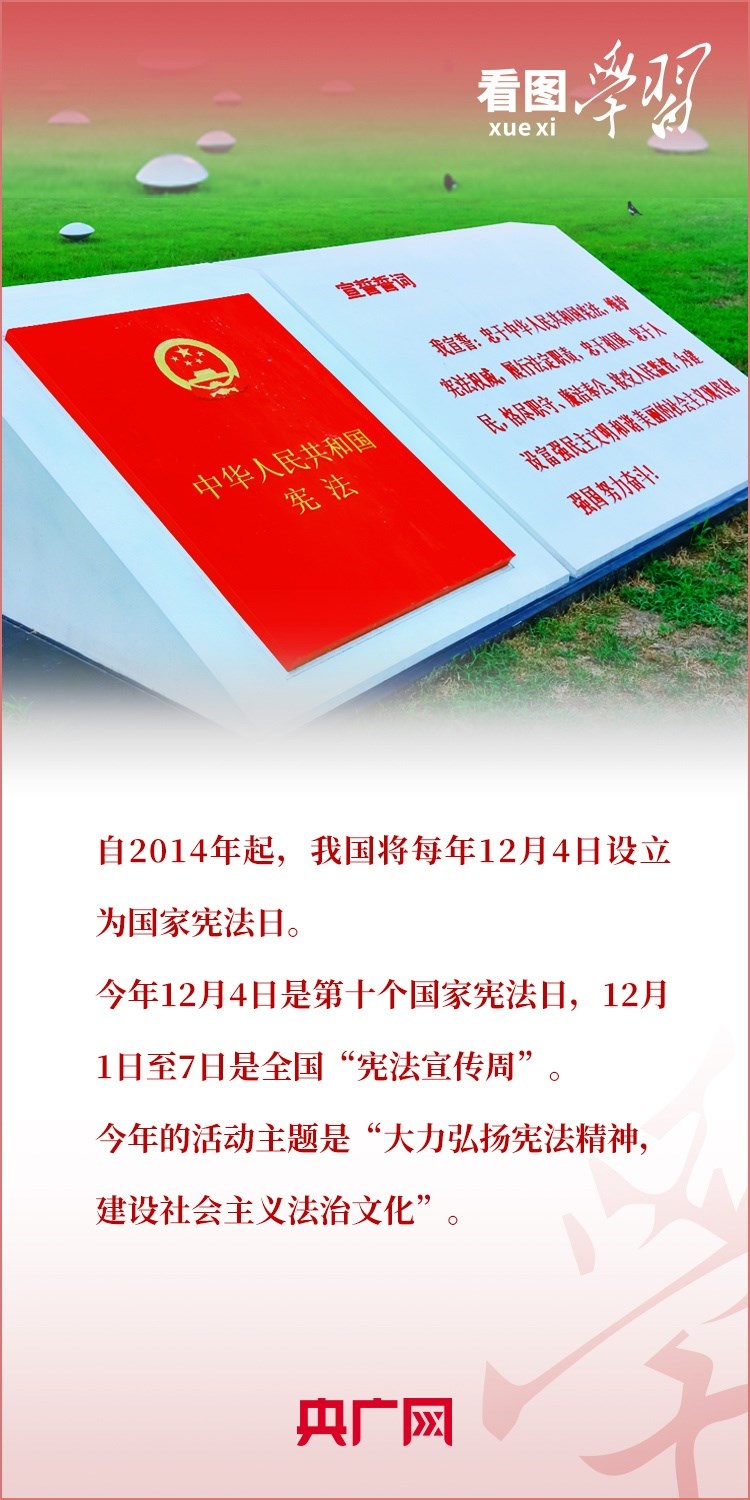 憲法是國家的根本法,是黨和人民意志的集中體現(xiàn)。尊崇憲法、學習憲法、遵守憲法、維護憲法、運用憲法,是每個公民的義務。在第十個國家憲法日(12月4日)來臨之際,《看圖學習》欄目為您梳理習近平總書記關于憲法的重要論述。一起來學習!