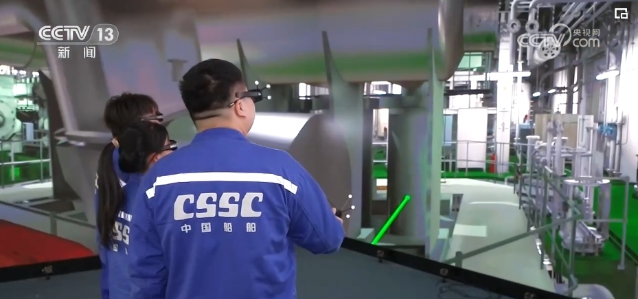 總臺(tái)央視記者 吳天白:如今造船靠的就是這艘“數(shù)字樣船”,戴上3D眼鏡便置身于一艘液化氣船的機(jī)艙,不僅能將船艙內(nèi)的情況盡收眼底。數(shù)字化工具就像庖丁解牛,把船舶這個(gè)巨系統(tǒng)拆解得清清楚楚,整合得天衣無(wú)縫,從而提升設(shè)計(jì)、制造的效率。