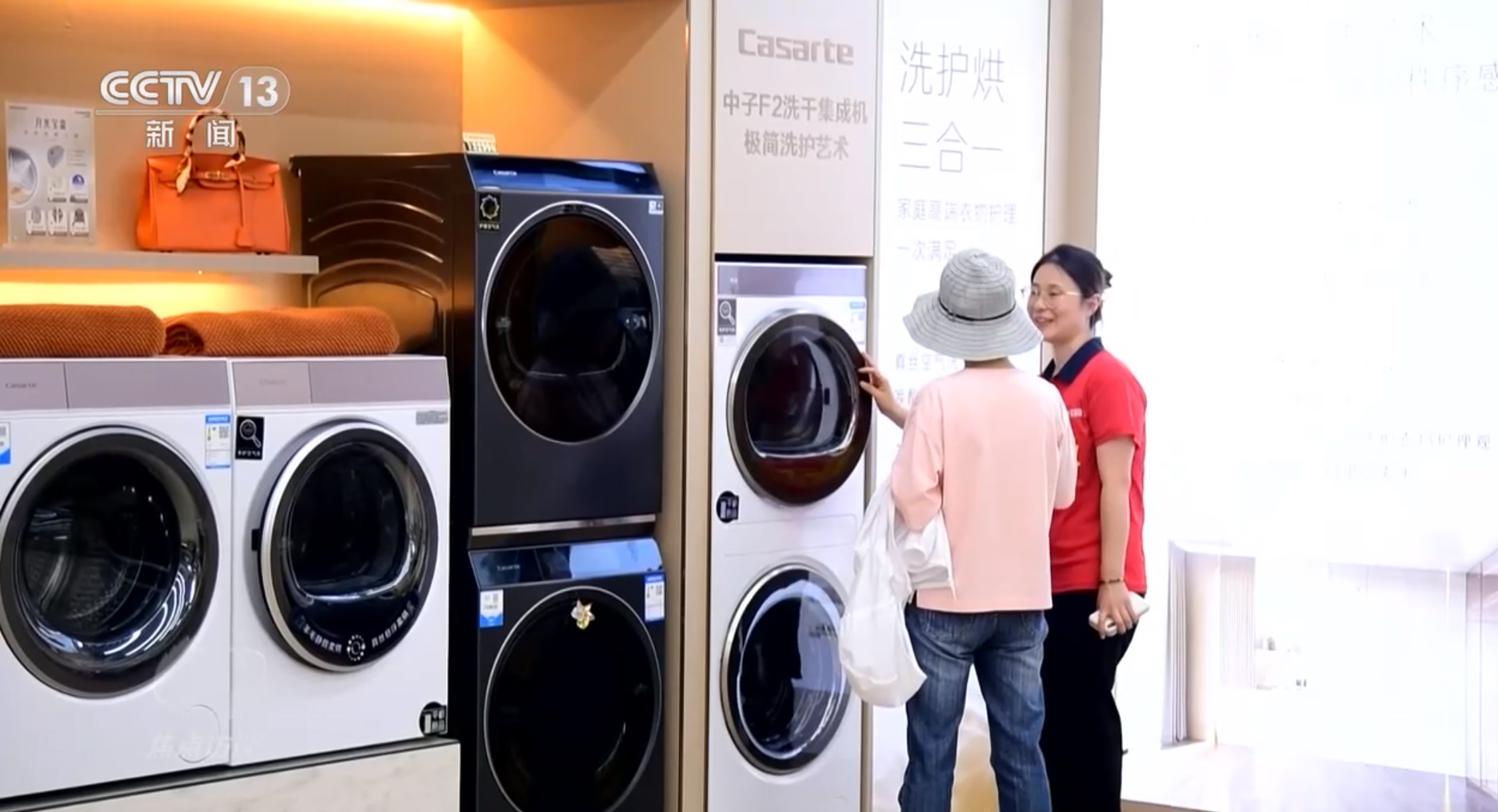 如今,在鄉(xiāng)鎮(zhèn)的一些賣場(chǎng),面積更大、分類更細(xì)致的商業(yè)綜合體越來越常見。從居民選購內(nèi)容來看,冰箱、電視、洗衣機(jī)傳統(tǒng)三大件早已司空見慣,更加智能化、綠色化的家電新大件也進(jìn)入縣城消費(fèi)者的“菜單”,其中烘干機(jī)、洗碗機(jī)、洗地機(jī)新三大件銷售增長最為明顯。