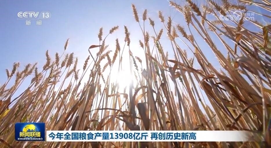 央視網(wǎng)消息(新聞聯(lián)播):國家統(tǒng)計局今天(12月11日)發(fā)布全年糧食產(chǎn)量數(shù)據(jù),2023年全國糧食總產(chǎn)量達13908.2億斤,再創(chuàng)歷史新高,連續(xù)9年穩(wěn)定在1.3萬億斤以上。