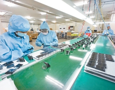 龍江工業(yè)園內(nèi),方正電機(越南)有限責(zé)任公司車間里的當?shù)貑T工正在工作。黎國忠攝