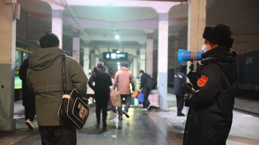 山西大同站鐵路工作人員在疏導(dǎo)進(jìn)出站旅客。(中國鐵路太原局集團(tuán)有限公司供圖)