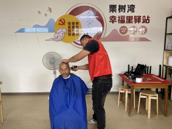 荊門(mén)市東寶區(qū)栗溪鎮(zhèn)栗樹(shù)灣村留守老人在“養(yǎng)老服務(wù)驛站”享受免費(fèi)理發(fā)服務(wù)