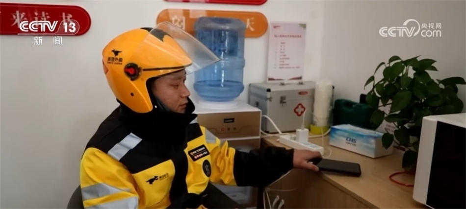 由于氣溫持續(xù)走低,外賣訂單量激增。在菏澤市定陶區(qū),當(dāng)?shù)卮蛟炝?0家休息驛站,為外賣員、快遞員等戶外作業(yè)人員提供熱水、手機充電、熱飯就餐等服務(wù)。