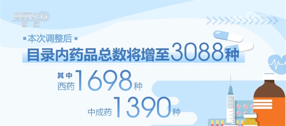 央視網(wǎng)消息:昨天(12月13日),國(guó)家醫(yī)保局舉行新聞發(fā)布會(huì),公布2023年國(guó)家醫(yī)保藥品目錄調(diào)整結(jié)果。今年是國(guó)家醫(yī)保藥品目錄連續(xù)六年進(jìn)行調(diào)整,經(jīng)相應(yīng)程序,共新增126種藥品,新版醫(yī)保藥品目錄內(nèi)藥品總數(shù)將增至3088種,保障水平得到進(jìn)一步提升。