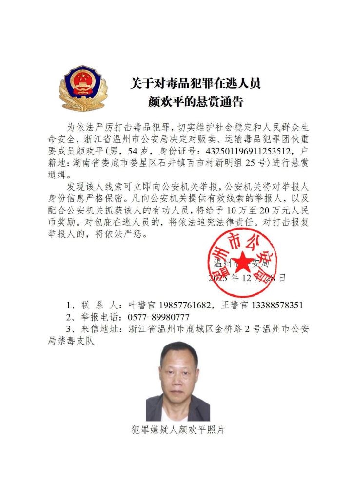 其中,湖南省郴州市公安局決定對(duì)張安龍、馬文祥、吳玉楊進(jìn)行公開(kāi)懸賞通緝;湖南省株洲市公安局決定對(duì)楊金梅進(jìn)行公開(kāi)懸賞通緝;江西省新干縣公安局決定對(duì)曾小勇、李國(guó)平、孫強(qiáng)進(jìn)行公開(kāi)懸賞通緝;浙江省溫州市公安局決定對(duì)顏歡平進(jìn)行公開(kāi)懸賞通緝;四川省遂寧市公安局決定對(duì)母朝東進(jìn)行公開(kāi)懸賞通緝;貴州省黔東南州公安局決定對(duì)龍華進(jìn)行公開(kāi)懸賞通緝。