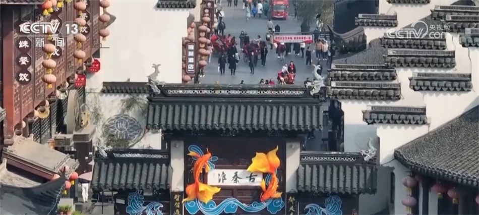 ??????新年將至,南京秦淮河畔的各式花燈陸續(xù)落成,與古建筑相互映襯。碧水繞城,畫舫穿行,裝扮后的古城如畫如詩。在“古秦淮”的牌坊上,魚躍龍門的造型立體生動。人們穿過牌坊,采買年貨,拍照留念。在夫子廟南側(cè)的門東歷史文化街區(qū),一條大龍造型的花燈依城墻而立。十二生肖燈組活靈活現(xiàn),讓古樸的街巷增添了迎新的色彩。