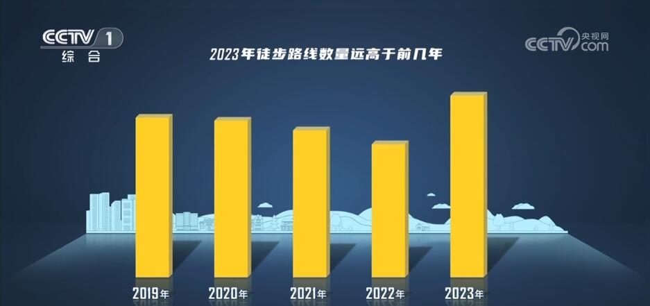 數(shù)據(jù)分析發(fā)現(xiàn),2023年徒步路線(xiàn)的數(shù)量遠(yuǎn)高于前幾年,相比2019年的漲幅接近15%。