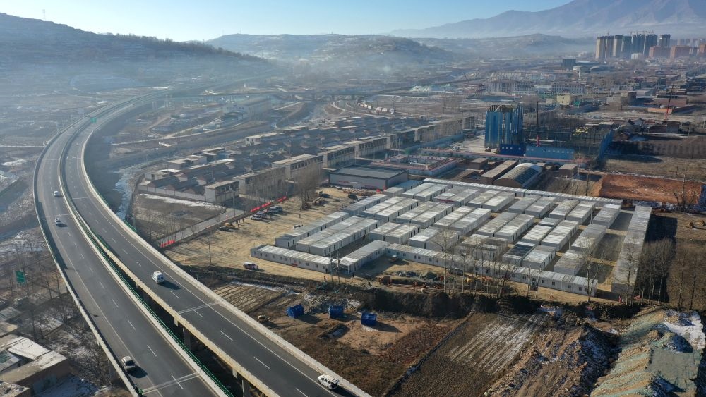 12月27日拍攝的積石山縣吹麻灘鎮(zhèn)集中安置點(無人機照片)。據(jù)介紹,截至29日15時,積石山縣已搭建完成用于學校教學、住宿、辦公用的活動板房1165間。新華社記者 陳斌 攝