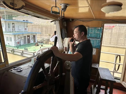 重慶忠縣,洋渡至西山,兩個(gè)碼頭間至今開行著最后的水上公交——“渝忠客2180”。秦大益是這艘船的船長,因?yàn)楫?dāng)?shù)夭宿r(nóng)的需要,他風(fēng)雨無阻地掌舵,一年至少出船363天,剩下的大年三十和大年初一,他也在船上守夜。