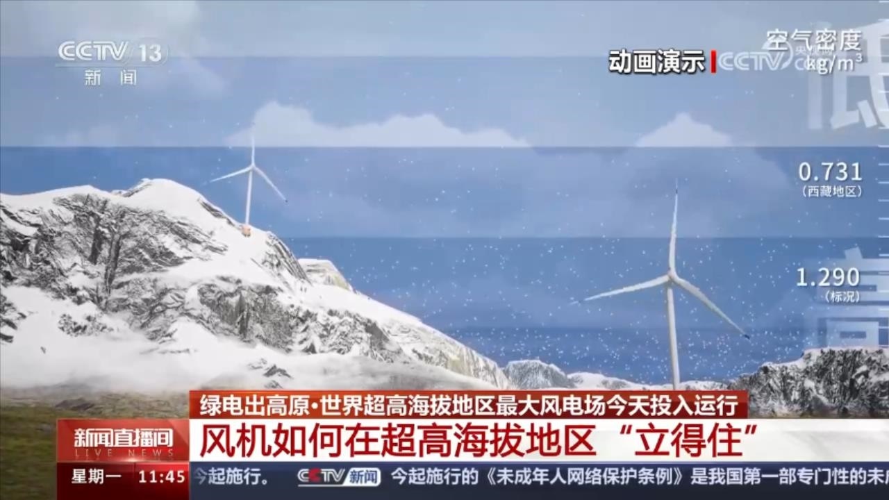 央視網(wǎng)消息:1月1日,世界超高海拔地區(qū)最大的風(fēng)力發(fā)電廠——那曲歐瑪亭嘎100兆瓦風(fēng)電項目正式投入運(yùn)行,一年可以向那曲市送電2億度,滿足23萬人一年的用電需求,還能減排二氧化碳20萬噸。