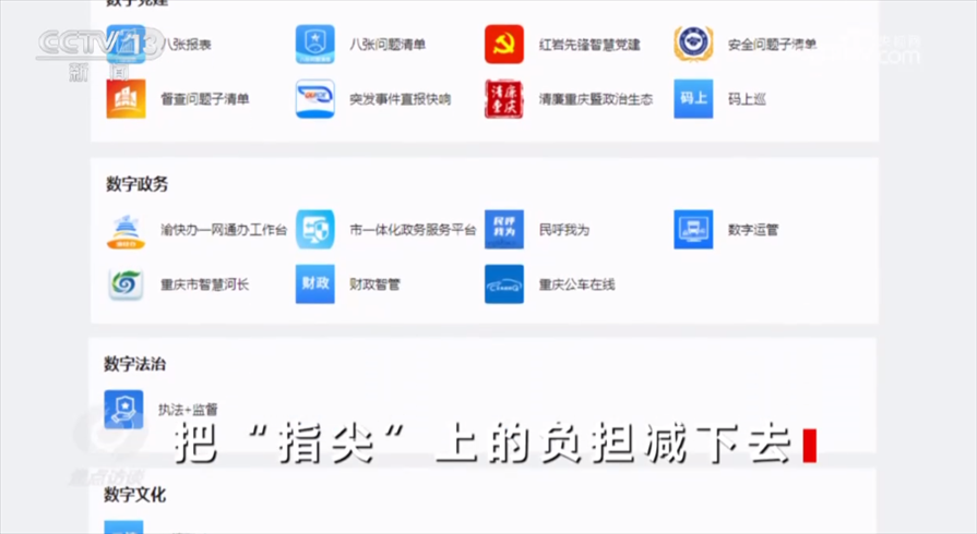 工作重心向基層服務(wù)轉(zhuǎn)變,才能切實(shí)看到為基層減負(fù)的實(shí)效。2021年,重慶市一體化、智能化、數(shù)字化政務(wù)工作平臺(tái)“渝快政”正式發(fā)布。“渝快政”在全市范圍內(nèi)實(shí)現(xiàn)了上下層級(jí)、橫向跨部門(mén)之間的協(xié)同,一個(gè)“渝快政”App就可以支持過(guò)去40多項(xiàng)高頻次的政務(wù)辦公應(yīng)用,過(guò)去各部門(mén)App的相應(yīng)功能、各種工作群都整合在了“渝快政”一個(gè)App里面。一表通、“141”基層智治平臺(tái)也已經(jīng)接入了“渝快政”,正在向全市推廣?,F(xiàn)在,文勇手機(jī)里的53個(gè)工作群已經(jīng)解散,郝歡手機(jī)里十幾個(gè)部門(mén)App也已經(jīng)被整合到“渝快政”。?