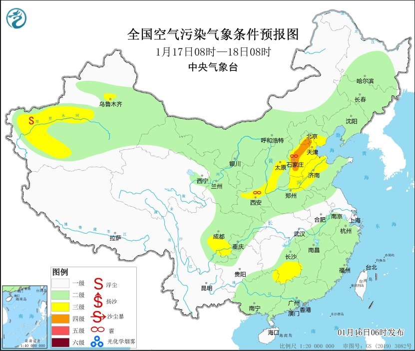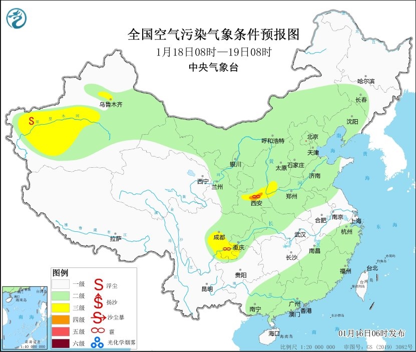 16日至18日,區(qū)域大氣擴散條件一般,山西南部、陜西關(guān)中等地的部分地區(qū)有輕至中度霾。