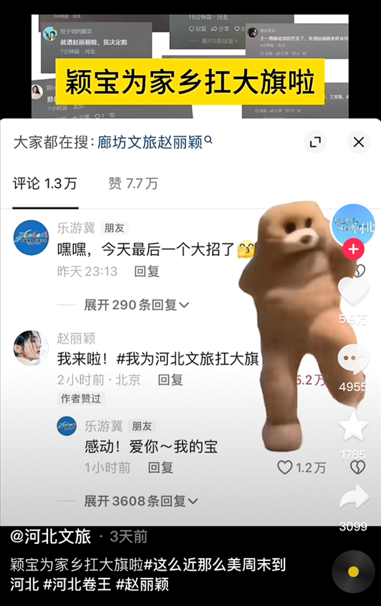 這還還還不夠,河北文旅也“搖人”了,趙麗穎、孫穎莎等一眾名人被請(qǐng)了過(guò)來(lái)為家鄉(xiāng)助力!