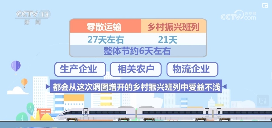 路上耗時,以前零散運輸需要8天左右,中途需要和其他同向車輛解編、重新編組,現(xiàn)在通過鄉(xiāng)村振興班列4天左右可以到達,這就節(jié)約了4天時間。