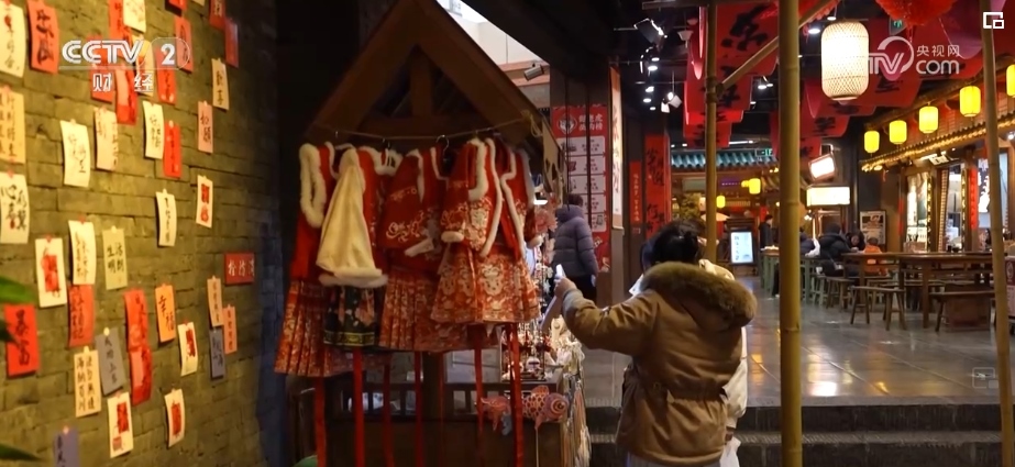 在中國人的習(xí)俗中,過年少不了趕集。長沙在宋朝時被稱作潭州,是重要的商業(yè)中心之一。在宋風(fēng)市井文化體驗地潭州市集,春聯(lián)、龍燈等裝飾,吸引了不少游客。