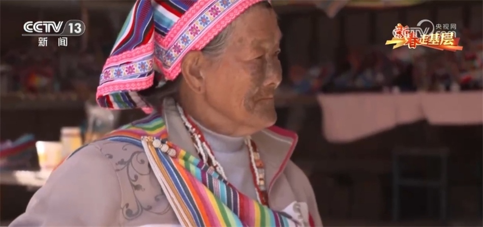 現(xiàn)在獨龍江鄉(xiāng),近千位獨龍族婦女和她一樣,在用傳統(tǒng)的方式編織著走向世界的獨龍?zhí)海钗氖四棠叹褪瞧渲兄?,她是目前獨龍族僅有的17位文面女中的一位。當記者找到她時,老奶奶正在熟練得玩手機。自從2022年5G網(wǎng)絡覆蓋了獨龍江鄉(xiāng)的6個行政村后,李文仕奶奶除了務農(nóng)織布、唱歌跳舞,還培養(yǎng)了一個新的愛好,就是網(wǎng)上沖浪。