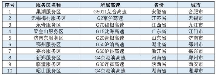 表 春節(jié)較繁忙服務(wù)區(qū) (全文圖表均來自交通運輸部路網(wǎng)監(jiān)測與應急處置中心官方微博)