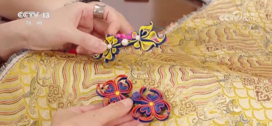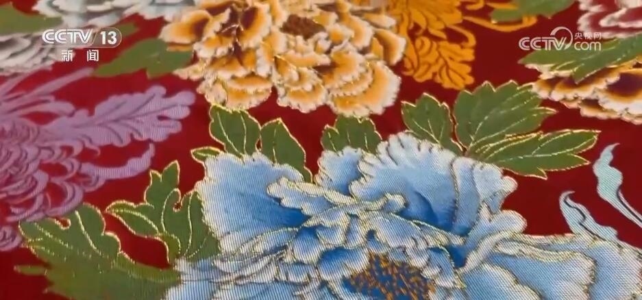 瑞蚨祥中式服裝手工制作技藝傳承人 汪超:這個就是機器(制作)的,你會看到它比較硬,比較板式一點。您看咱們手工的感覺就很軟,而且每一朵花像有生命力一樣。最不一樣看背面,它要不停地?fù)Q線,不停地去計算,它哪該換線,哪該換色去織造,所以這也是機器織造物沒有辦法替代的很關(guān)鍵的點。