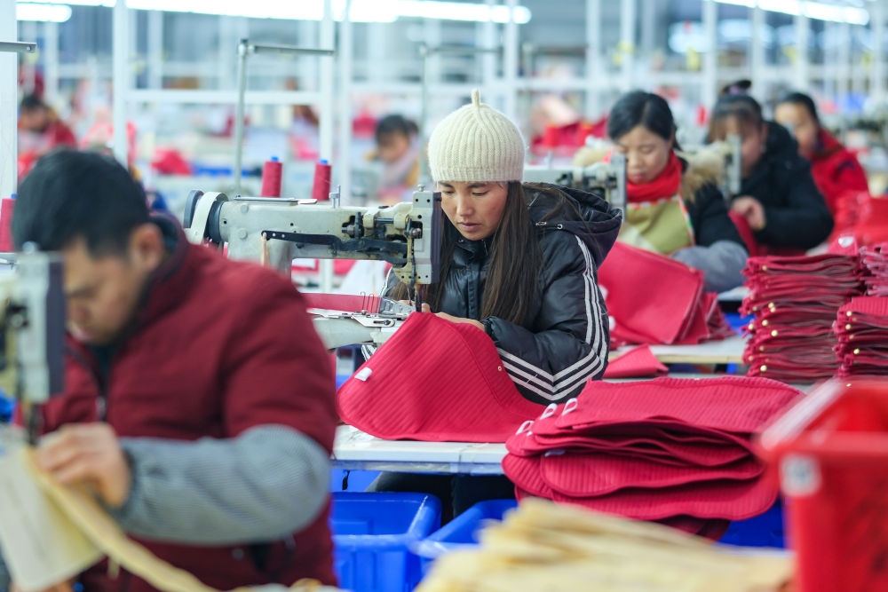 2024年1月18日,社區(qū)居民在湖南省湘西土家族苗族自治州鳳凰縣禾庫鎮(zhèn)紅安社區(qū)的鄉(xiāng)村振興就業(yè)車間工作。紅安社區(qū)是由易地搬遷安置區(qū)單獨成立的新社區(qū),也是湖南省最大的少數民族聚居安置區(qū)。新華社記者 張鋮 攝